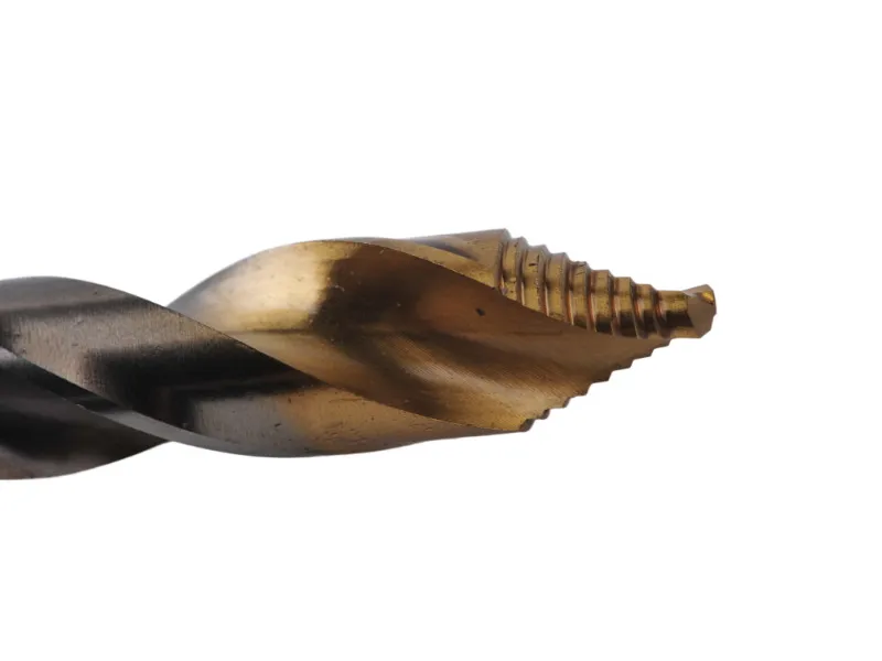 Unique design X-step point, for precision drilling, faster, more efficient chip removal and premium performance